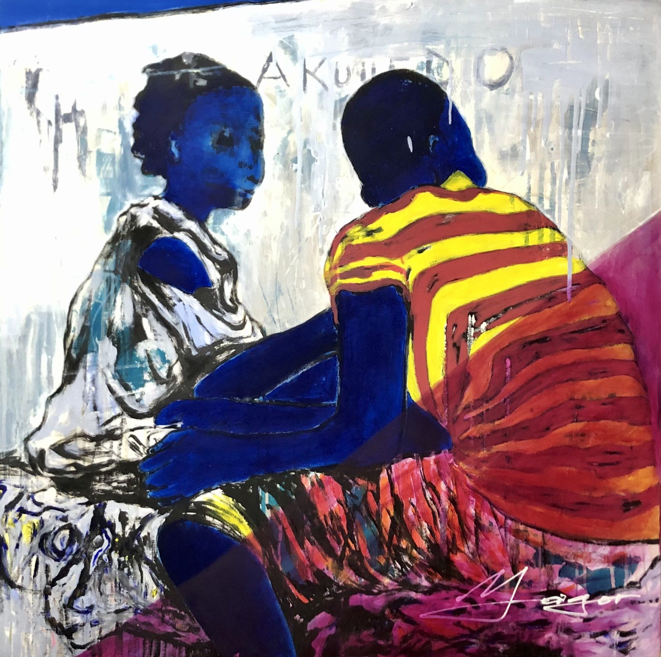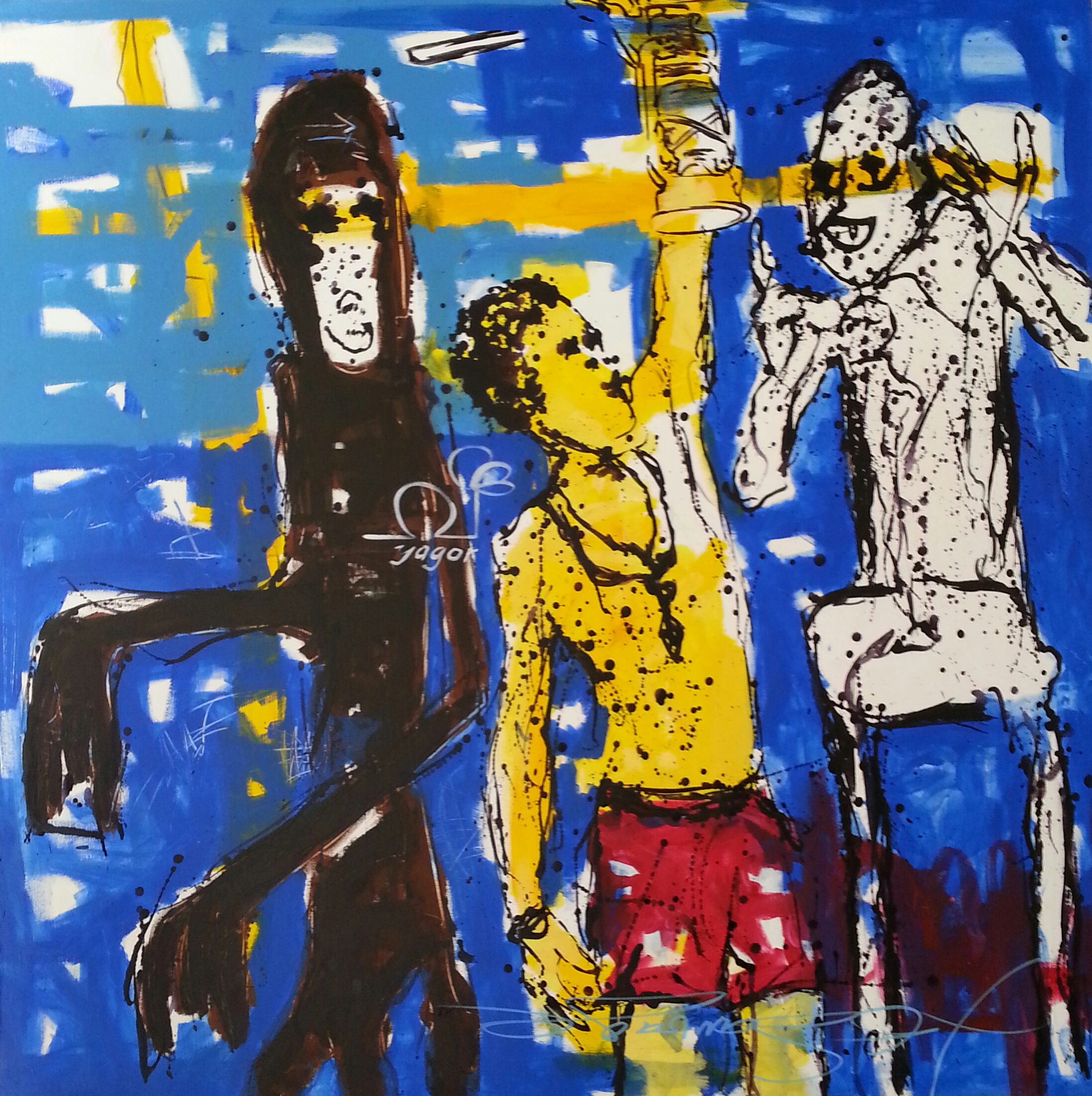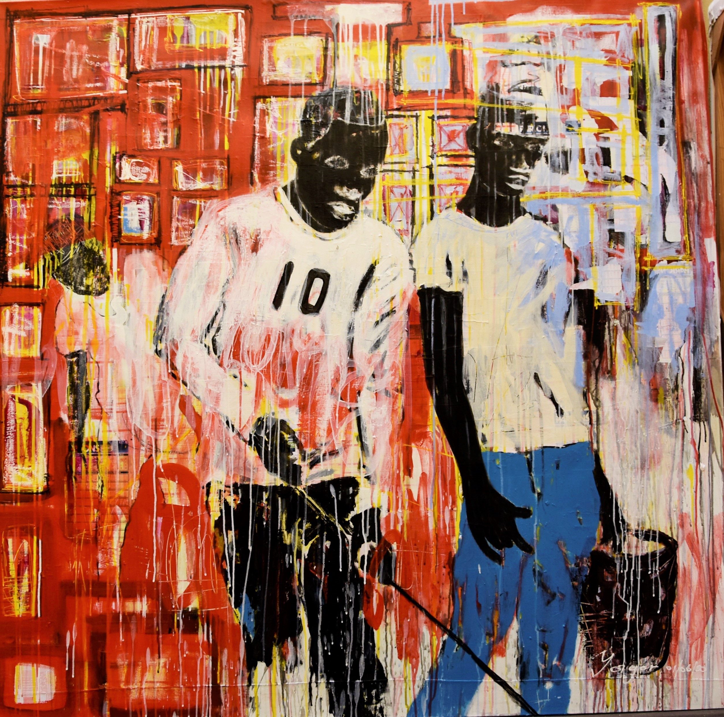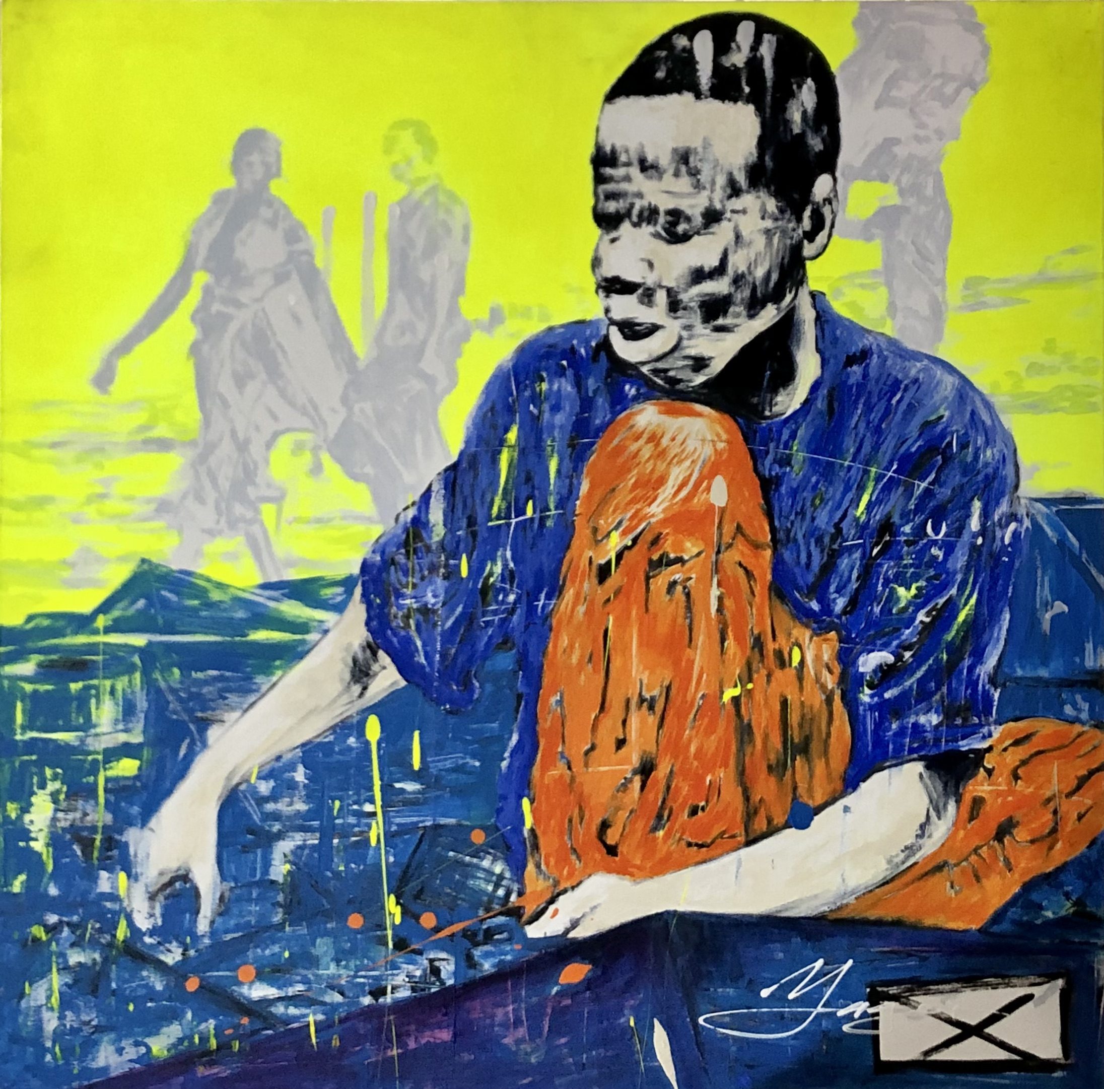 Artiste plasticien né en 1981 en Côte d'Ivoire, Yagor Yahaut puise son univers dans le réel et ses dislocations, principalement ses failles humaines. Les différentes conditions humaines l'inspirent, tout comme les co-relations que les individus tissent entre eux. Carrefour de différents styles, comprenant l'art brut, art abstrait, art singulier et figuratif, la touche de Yagor Yahaut se caractérise par un agencement ordonné par une superposition de couches, dévoilant - cachant - des motifs peints auparavant, ainsi que des personnages finement réalisés par des lignes de coulures qu'il maîtrise avec justesse tel un couturier. La douceur incisive de ces dentelles picturales vient ciseler et parfaire la gestuelle hâtive du reste de la composition, à la manière d'un maître d'école qui efface rapidement le tableau à la fin de la leçon. Les superpositions des couches de peinture peuvent être perçues comme une métaphore des ressorts de la vie : ce qu'on fait, ne fait pas, et dont le temps est le seul régulateur, un écho à la loi universelle du karma.