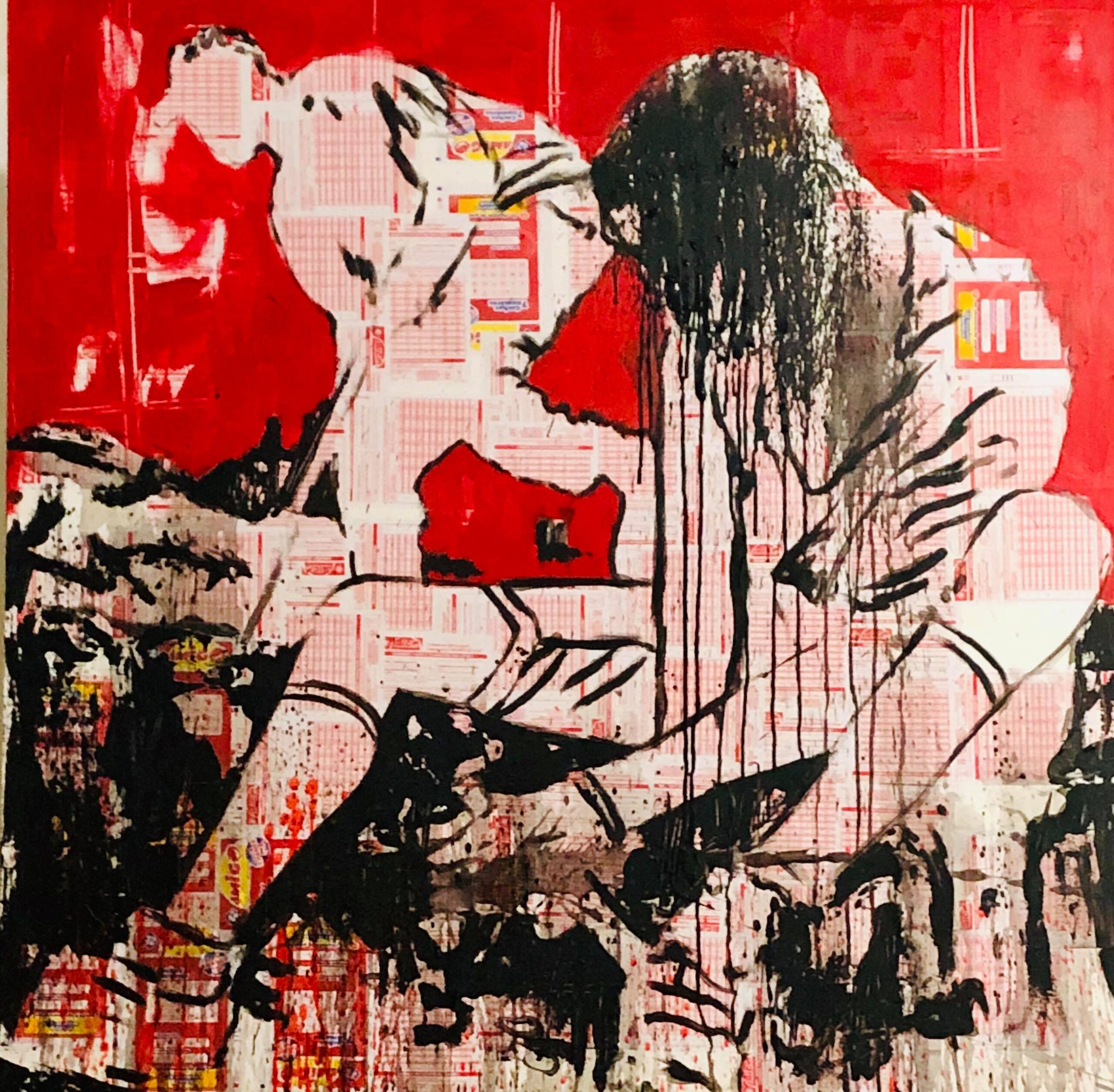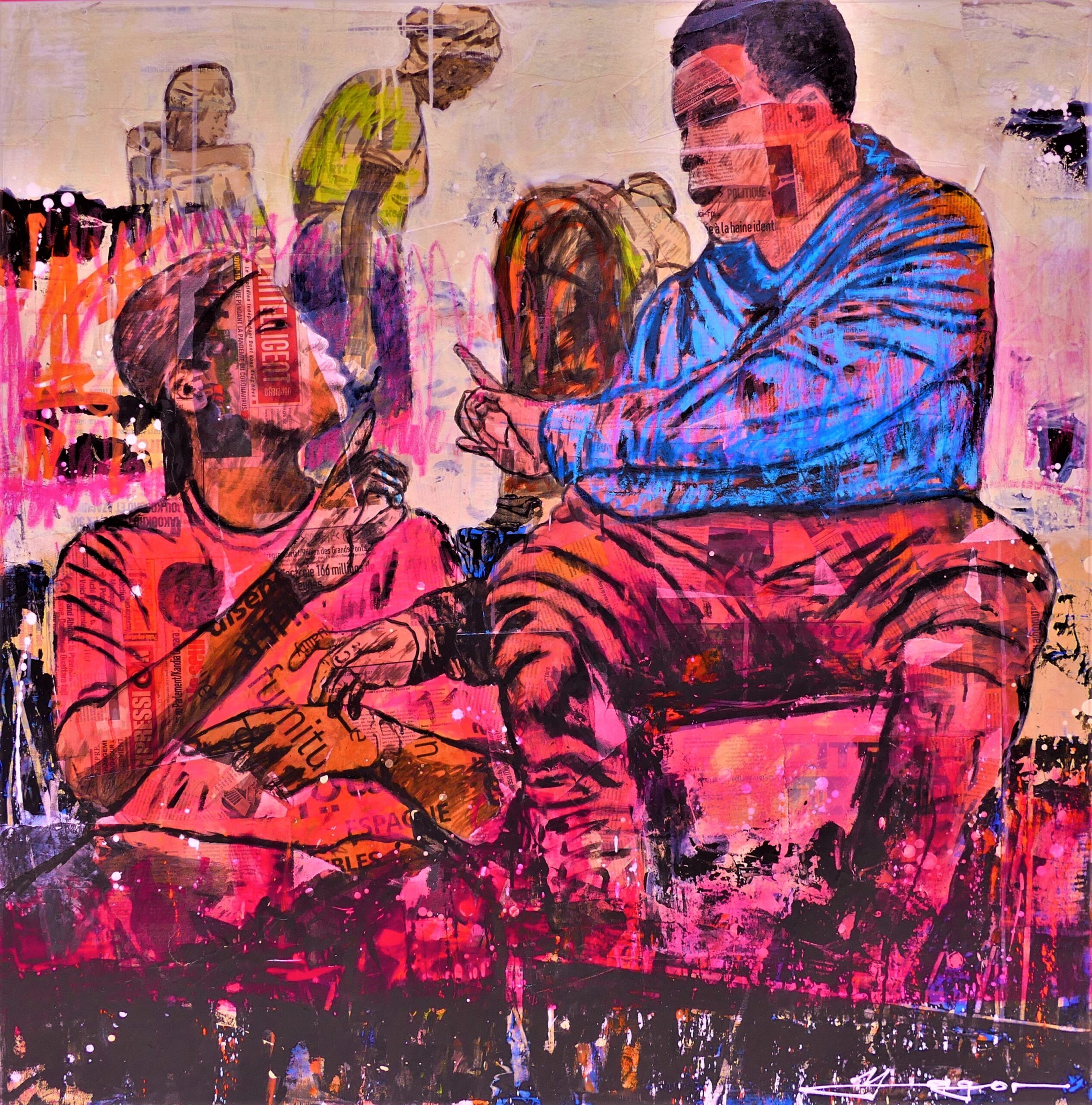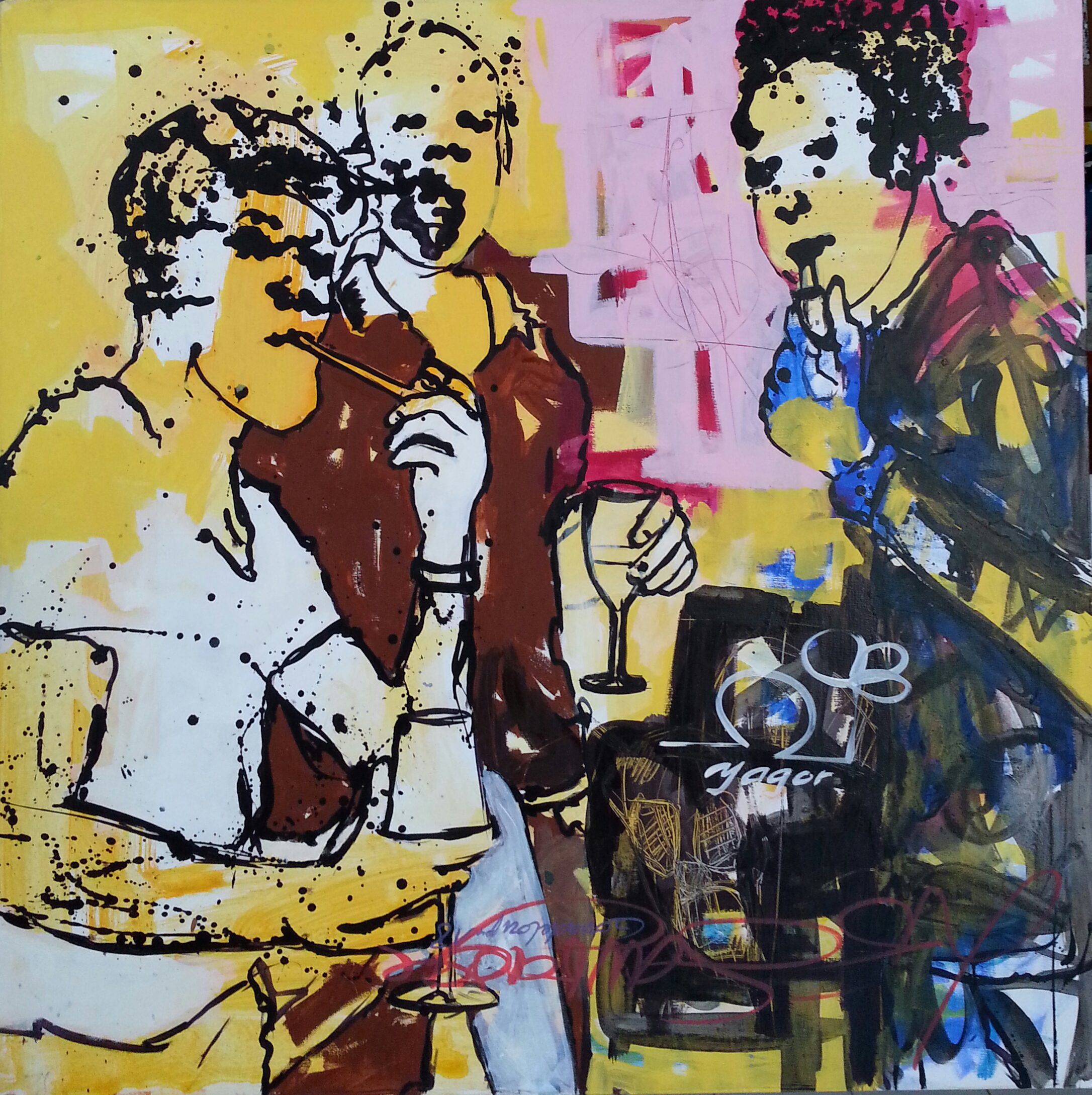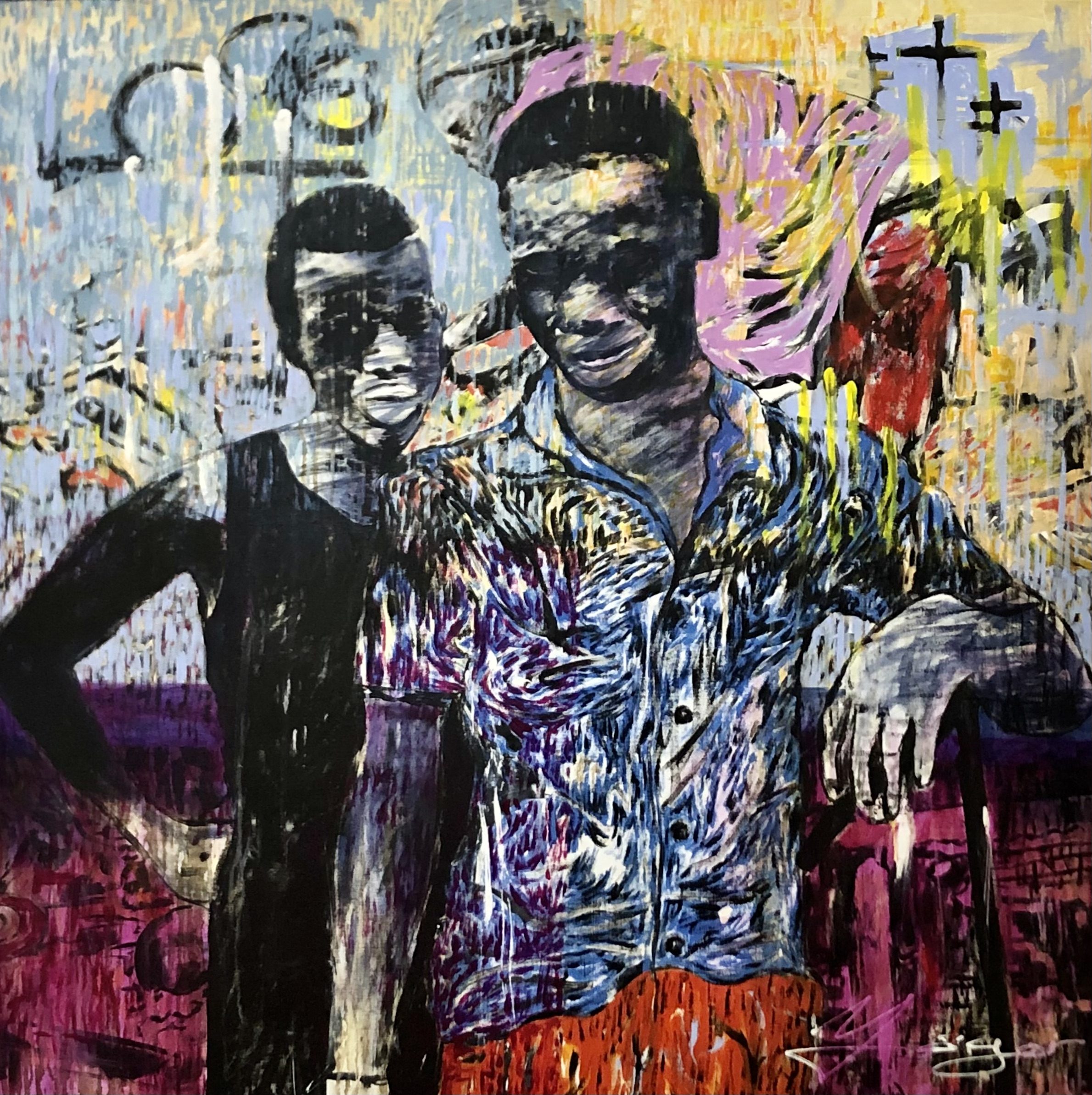 Artiste plasticien né en 1981 en Côte d'Ivoire, Yagor Yahaut puise son univers dans le réel et ses dislocations, principalement ses failles humaines. Les différentes conditions humaines l'inspirent, tout comme les co-relations que les individus tissent entre eux. Carrefour de différents styles, comprenant l'art brut, art abstrait, art singulier et figuratif, la touche de Yagor Yahaut se caractérise par un agencement ordonné par une superposition de couches, dévoilant - cachant - des motifs peints auparavant, ainsi que des personnages finement réalisés par des lignes de coulures qu'il maîtrise avec justesse tel un couturier. La douceur incisive de ces dentelles picturales vient ciseler et parfaire la gestuelle hâtive du reste de la composition, à la manière d'un maître d'école qui efface rapidement le tableau à la fin de la leçon. Les superpositions des couches de peinture peuvent être perçues comme une métaphore des ressorts de la vie : ce qu'on fait, ne fait pas, et dont le temps est le seul régulateur, un écho à la loi universelle du karma.